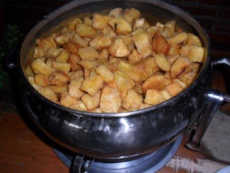 Linguiça defumada • Moelinha ao molho com pão de sal • Torresminho a pururuca • Mandioquinha frita • Frango a passarinho • Isca de carne de boi acebolada • Carne de porco em cubos • Fígado com jiló • Isca de frango empanada • Batatinha frita com bacon • Bolinho de bacalhau • Pasteizinhos de angu • Anéis de cebola • Macarrão de chapa